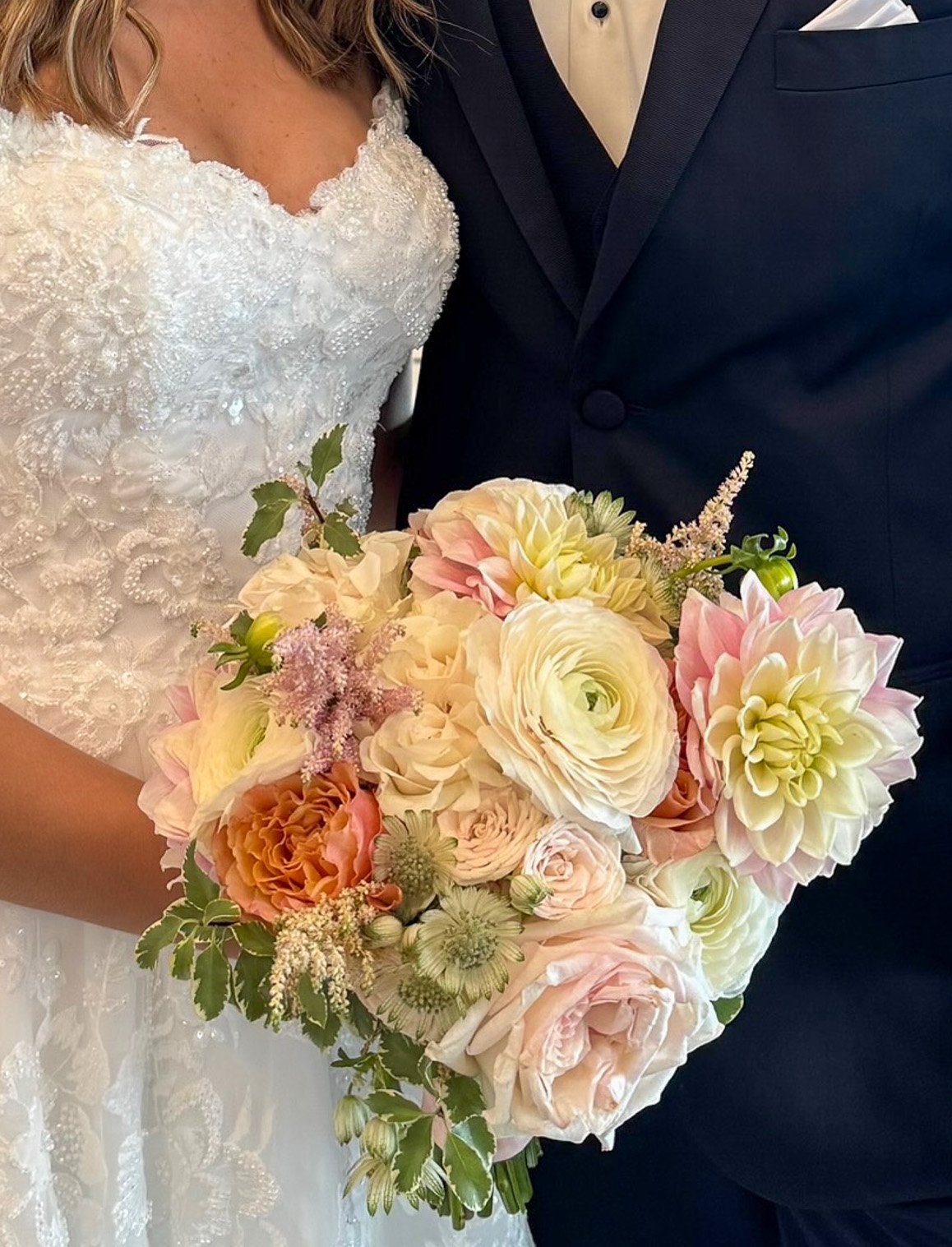 Hand-tied bouquets consist of premium blooms arranged in a flowing and artful design. Each arrangement will be one of a kind. Your florals will be custom and unique, based on the availability of seasonal market blooms.
